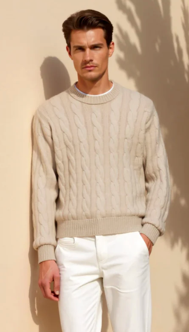 Puloverul tricotat îmbină farmecul atemporal al tricotajelor tradiționale cu confortul modern de zi cu zi. Realizat din bumbac de înaltă calitate, modelul său împletit adaugă textură și rafinament oricărei ținute — fie că este vorba despre un look casual cu pantaloni chino, fie despre unul elegant cu o cămașă. Ușor, călduros și versatil, se potrivește perfect în orice anotimp și situație. Disponibil în mai multe culori subtile care reflectă stilul tău personal: bej, albastru marin, gri și verde măsliniu.