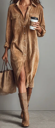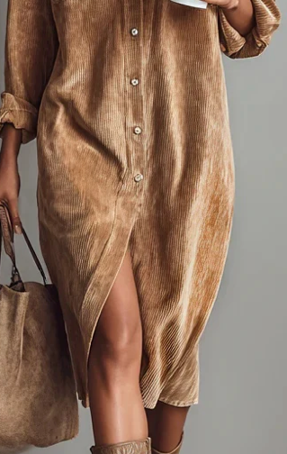 Rochia din catifea Camellia îmbină confortul cu rafinamentul într-un design clasic și modern în același timp. Cu o croială alungită și o textură moale, se așază impecabil pe siluetă, scoțând în evidență eleganța naturală prin simplitate. Închiderea cu un singur nasture adaugă un detaliu minimalist și practic, oferind posibilitatea de a o purta în diverse moduri — lejeră, elegantă sau în straturi. Ideală pentru birou, întâlniri sau momente relaxate, este o piesă esențială pentru femeia care apreciază rafinamentul fără efort.
